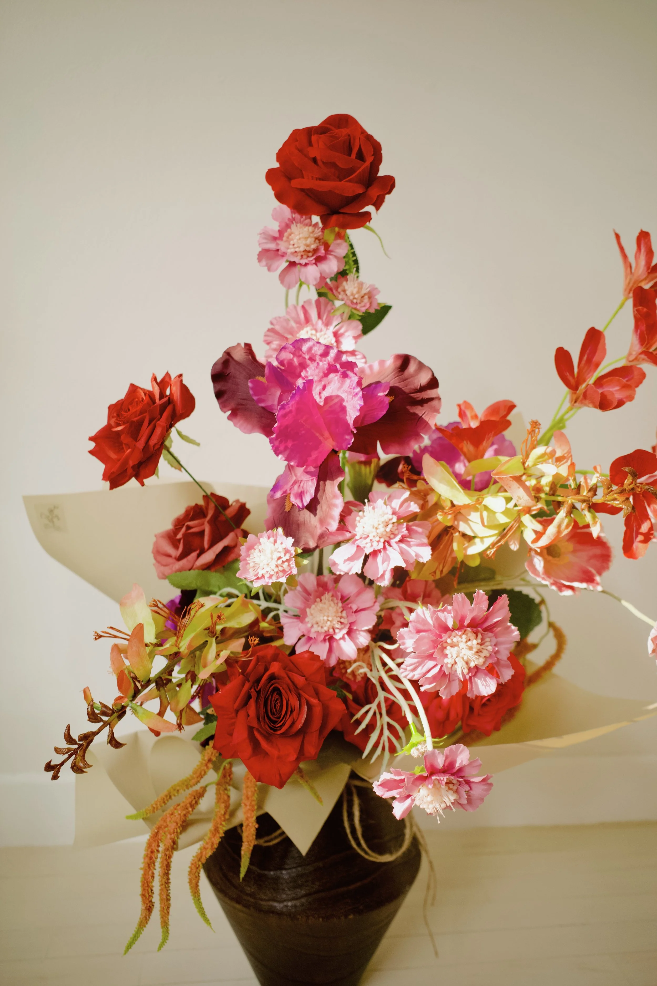 Crafted with a curated mix of premium lifelike silk florals, selected for realism, texture, and longevity — designed to evolve gracefully with time.