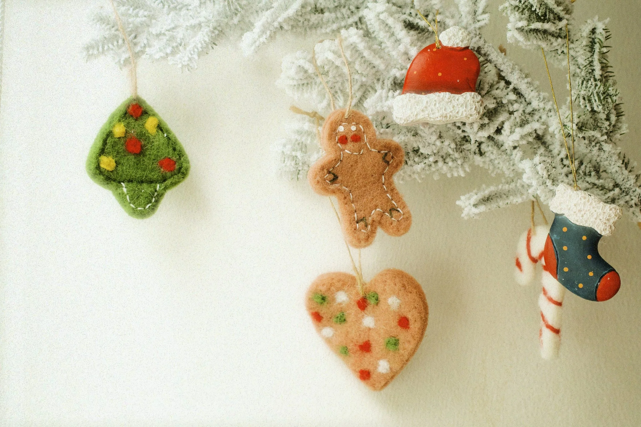 Some of the ornaments this year are made of soft felt — perfect for curious little hands.